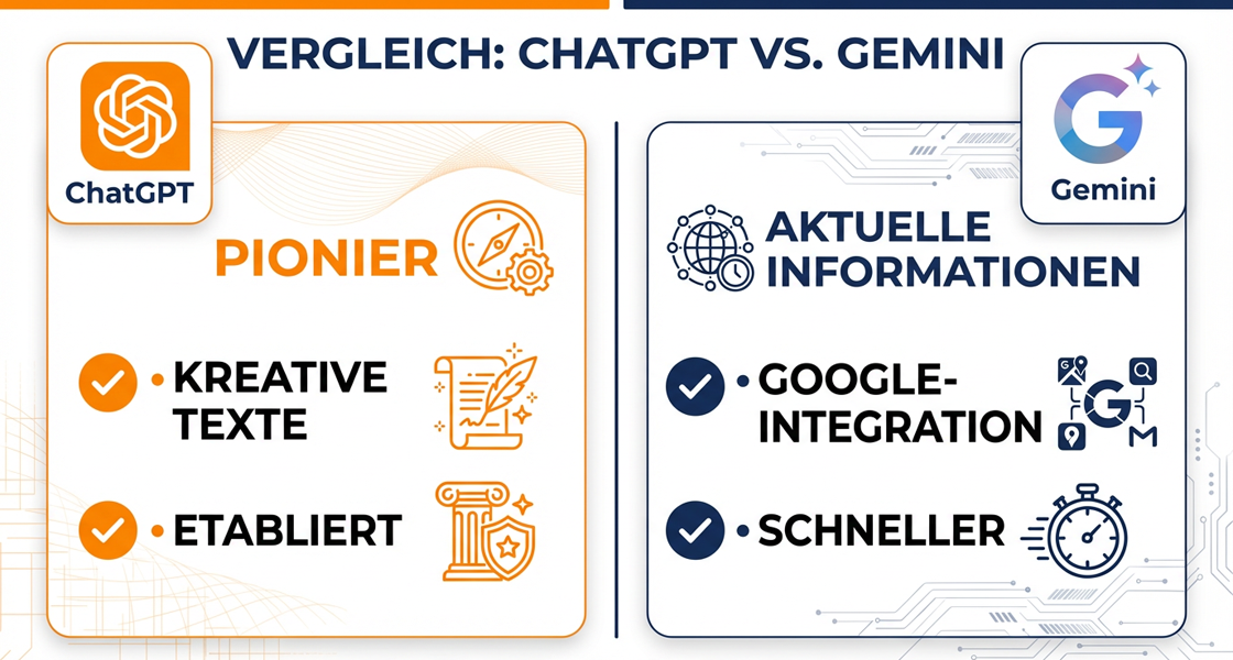 Wenn Sie bereits Google-Dienste (Gmail, Kalender) nutzen, wird Gemini durch seine Aktualität und die tiefe Integration punkten. Für alle, die Wert auf kreative Freiheit und einen von Google unabhängigen Assistenten legen, ist ChatGPT die erste Wahl. Der wichtigste Tipp: Trauen Sie sich und probieren Sie beide aus! So finden Sie schnell heraus, welcher Helfer am besten zu Ihren Fragen passt.
